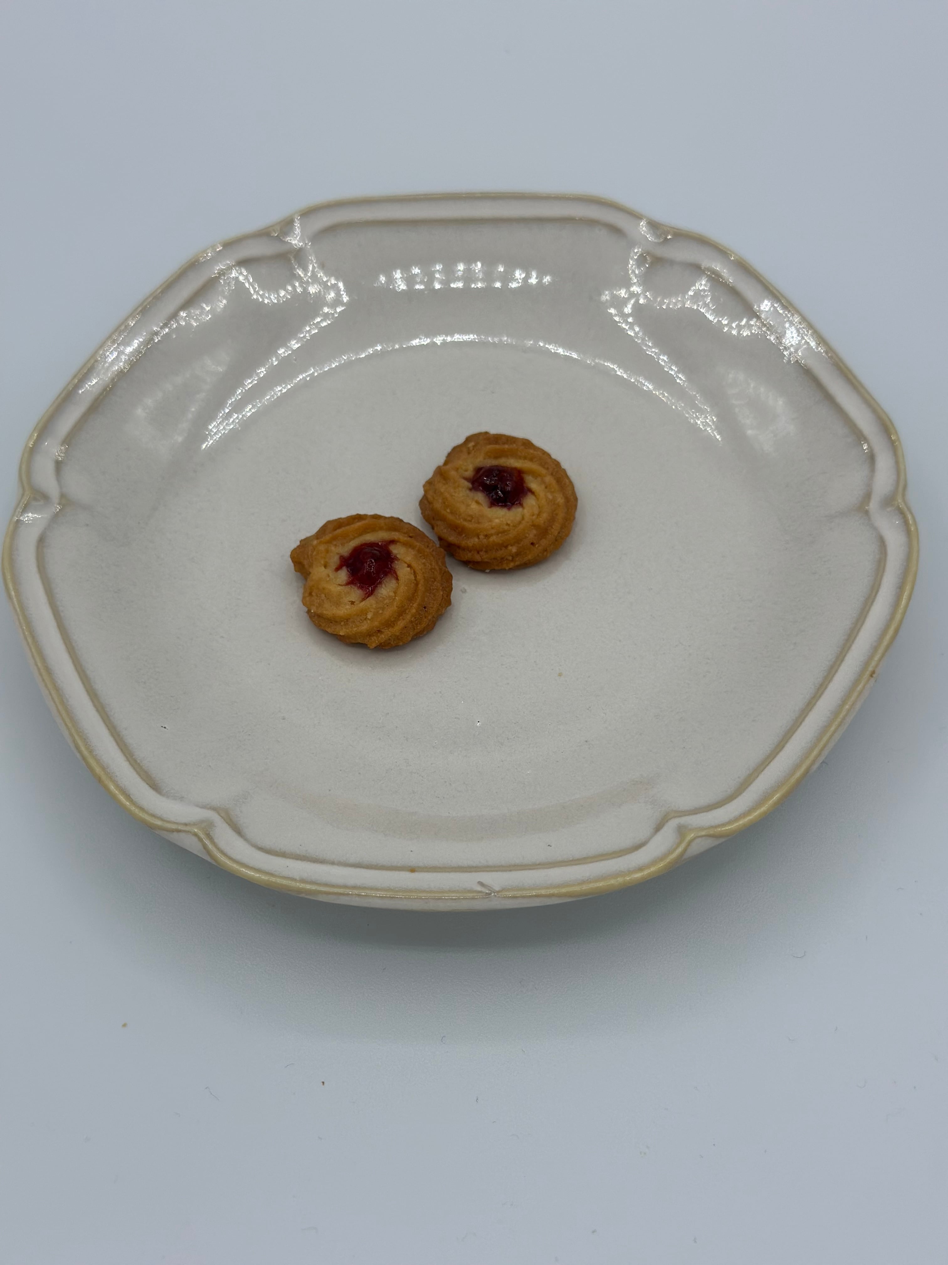 *絞り出しクッキー各1枚×3種(ドレンチェリー赤、緑、ラズベリージャム)